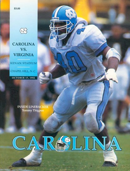 | Photo Credits: Personal Collection of Earle Maxwell (ebay seller name "pawguy"): 1990, 1992, 1994 & 1996-1999 UVA vs. Clemson programs www.tarheeltimes.com: 1990-1992, 1994-1997 & 1999 UVA vs. UNC programs www.ivanmphotography.com: 1991-1997 UVA vs. Virginia Tech programs www.nolefan.org: 1992, 1993, 1996, 1997 & 1999 UVA vs. Florida State programs Duke University Football Programs, University Archives, Duke University: 1990 UVA vs. Duke program |