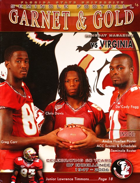 | Photo Credits: Personal Collection of Earle Maxwell (ebay seller name "pawguy"): 2001 & 2003 UVA vs. Clemson programs www.tarheeltimes.com: 2001, 2003, & 2005-2007 UVA vs. UNC programs www.ivanmphotography.com: 2002, 2004, & 2006-2007 UVA vs. Virginia Tech programs www.nolefan.org: 2000, 2002 & 2004 UVA at Florida State programs |